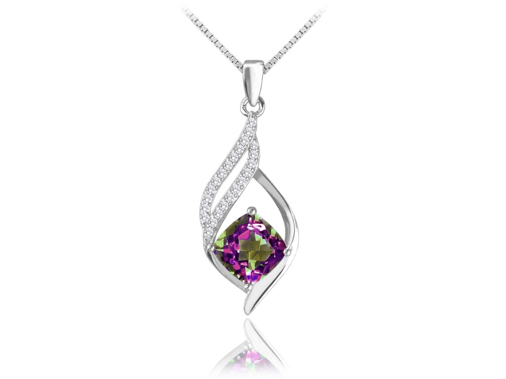 MINET Luxusní stříbrný náhrdelník mystický přírodní KŘIŠŤÁL s bílými zirkony