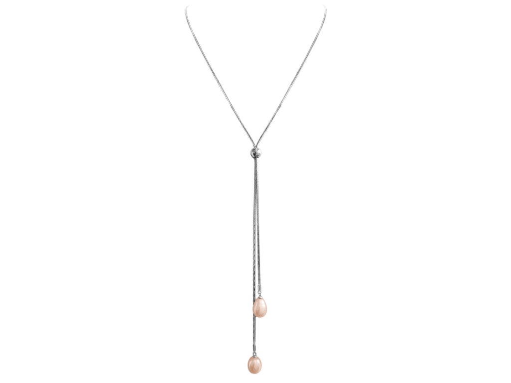 MINET Luxusní stříbrný náhrdelník s růžovými perlami