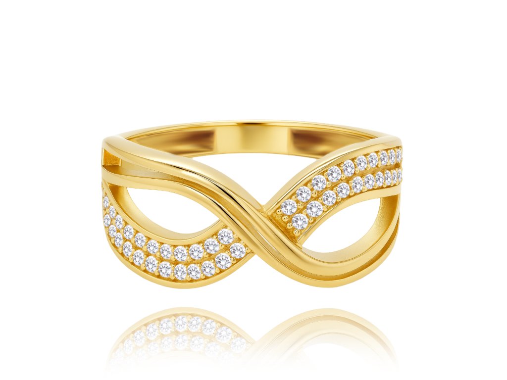Moderní prsten z pravého 14karátového zlata s bílými zirkony. Prsten je vhodný pro každodenní nošení i zvláštní příležitosti. Kvalitního zpracování si všimnete hned po prvním nošení.