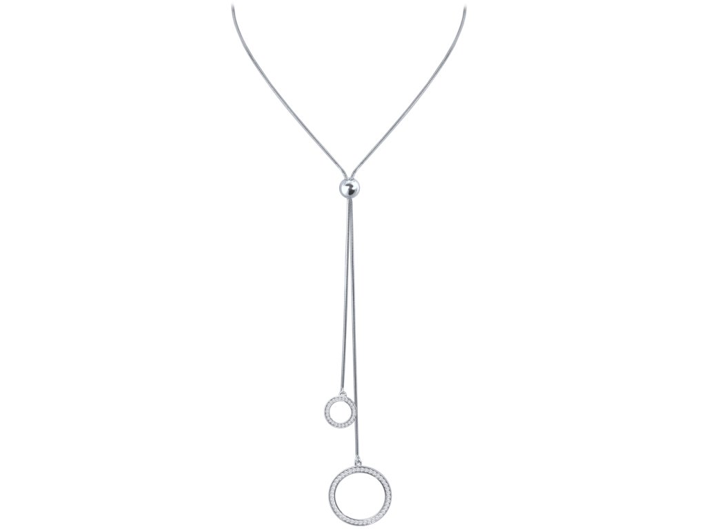 MINET Moderní stříbrný náhrdelník visící kruhy se zirkony Ag 925/1000 11,30g