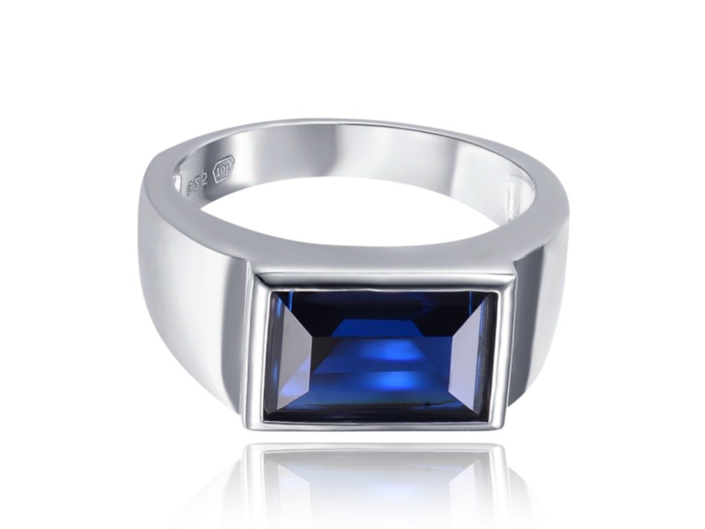 MINET Pánský pečetní stříbrný prsten s modrým zirkonem vel. 67