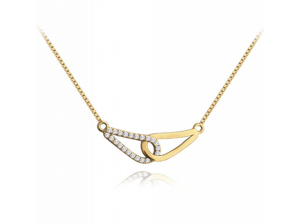 MINET Pozlacený propletený stříbrný náhrdelník s bílými zirkony