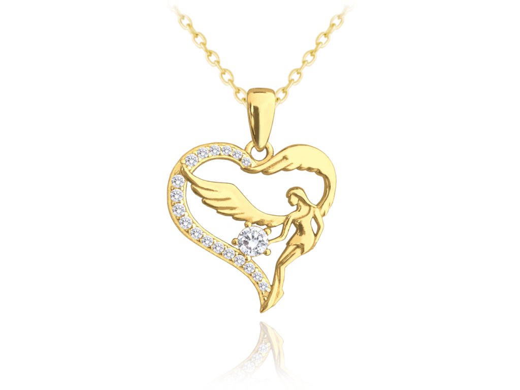 MINET Pozlacený stříbrný náhrdelník ANDĚL se zirkonem