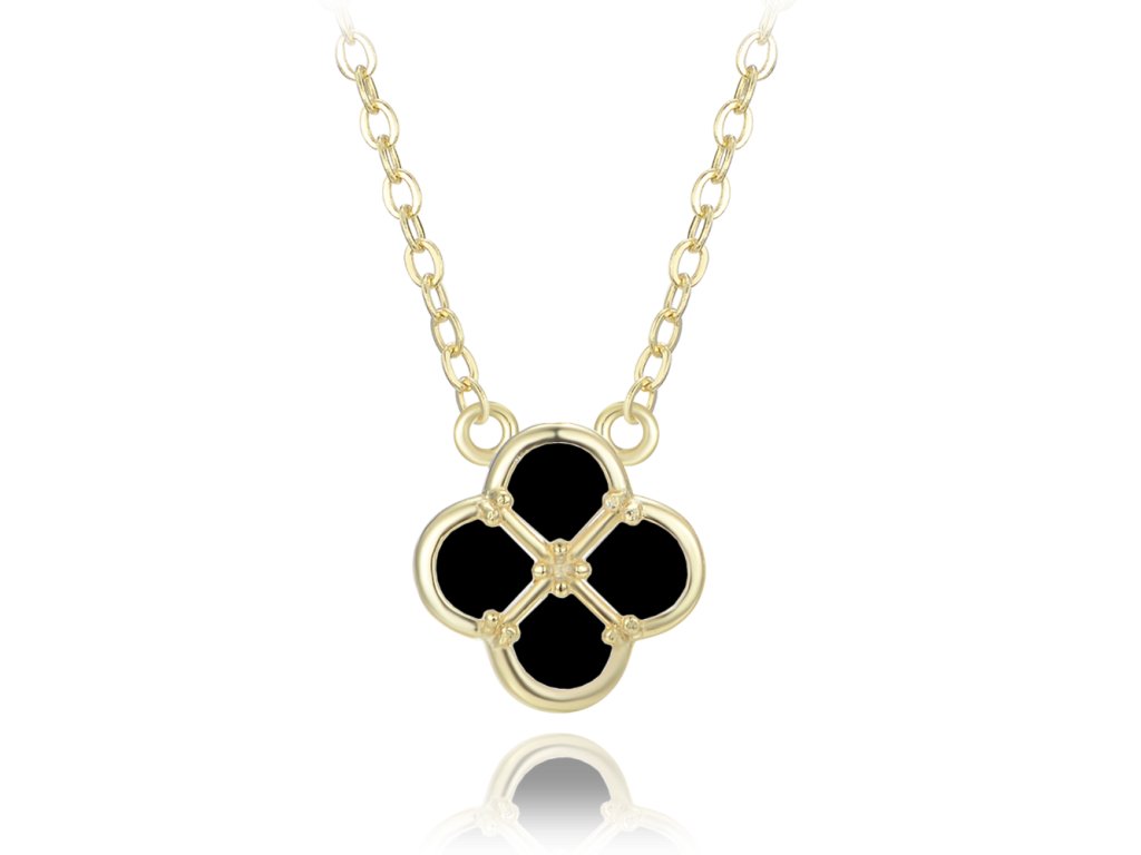 MINET Pozlacený stříbrný náhrdelník čtyřlístek s černou perletí