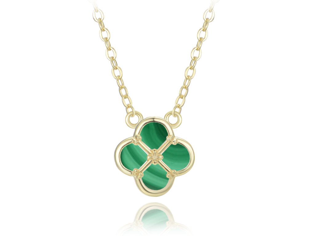 MINET Pozlacený stříbrný náhrdelník čtyřlístek s malachitem
