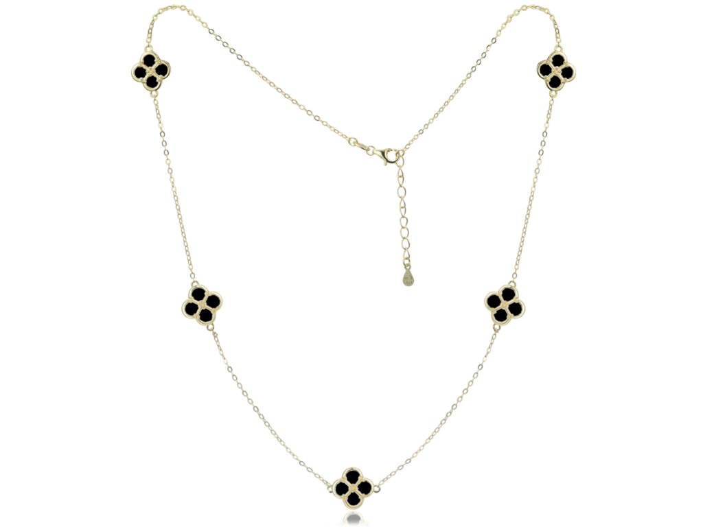 MINET Pozlacený stříbrný náhrdelník čtyřlístky s černou perletí