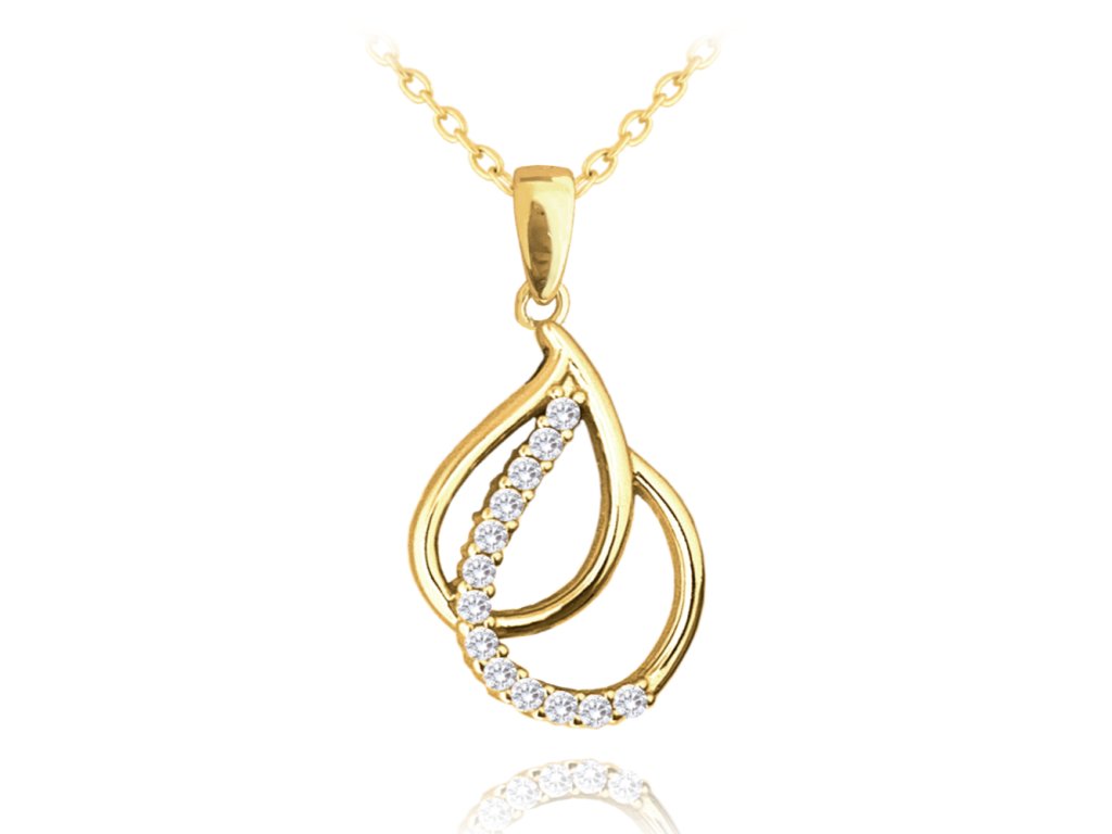 MINET Pozlacený stříbrný náhrdelník dvojité KAPKY s bílými zirkony