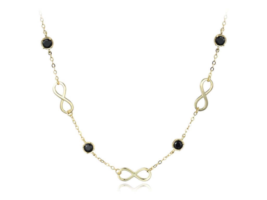 Pozlacený náhrdelník MINET se symbolem nekonečna je odrazem současných trendů. Zajímavě posazené kamínky z něj udělají originální doplněk pro každodenní nošení.
