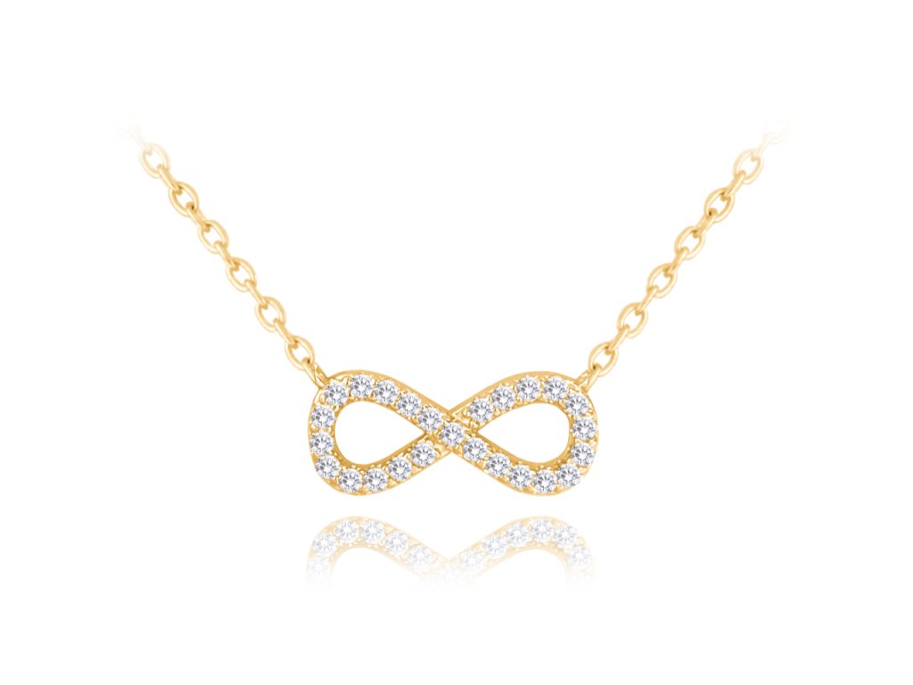 MINET Pozlacený stříbrný náhrdelník NEKONEČNO s bílými zirkony
