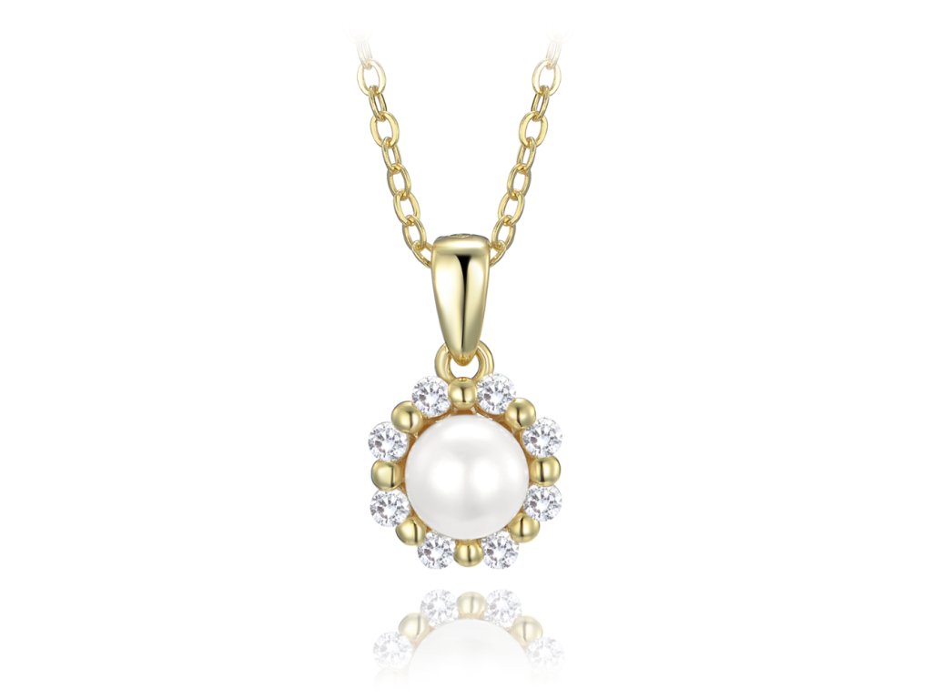 MINET Pozlacený stříbrný náhrdelník s bílou perlou a zirkony