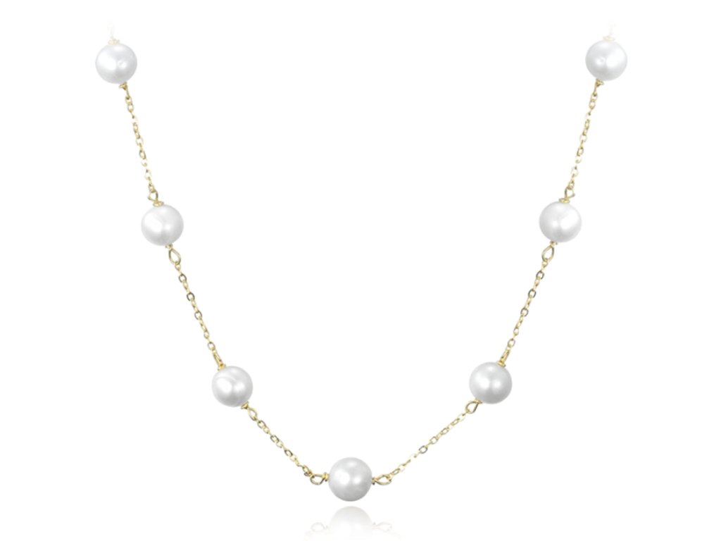 MINET Pozlacený stříbrný náhrdelník s bílými perlami Ag 925/1000 11,70g