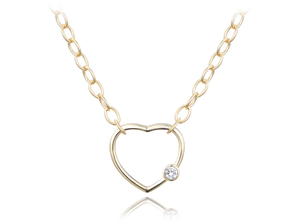 MINET Pozlacený stříbrný náhrdelník se srdíčkem LOVE s bílým zirkonem