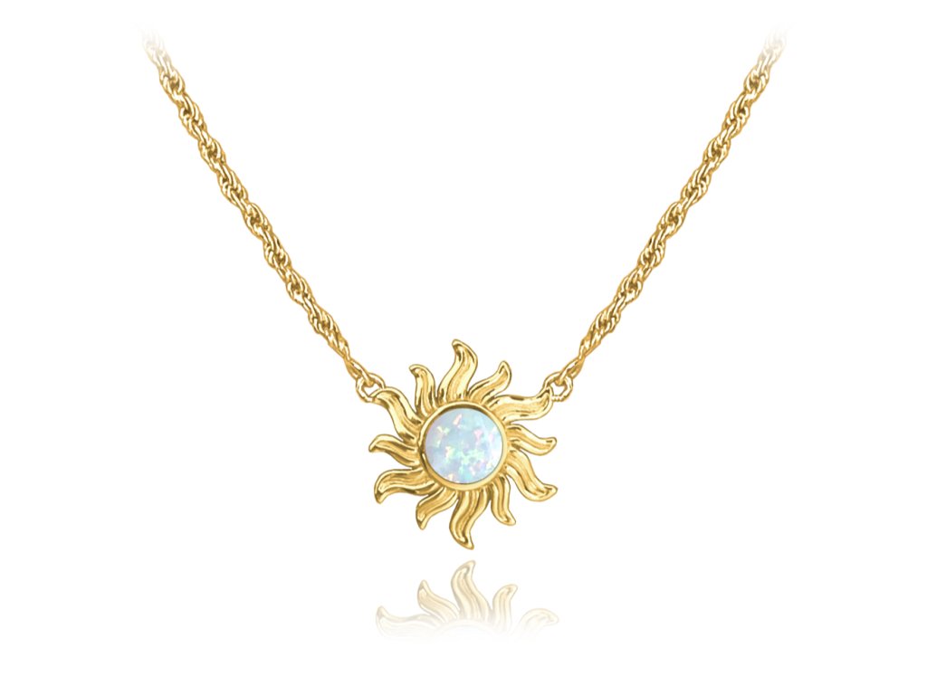 MINET Pozlacený stříbrný náhrdelník SLUNCE s bílým opálem