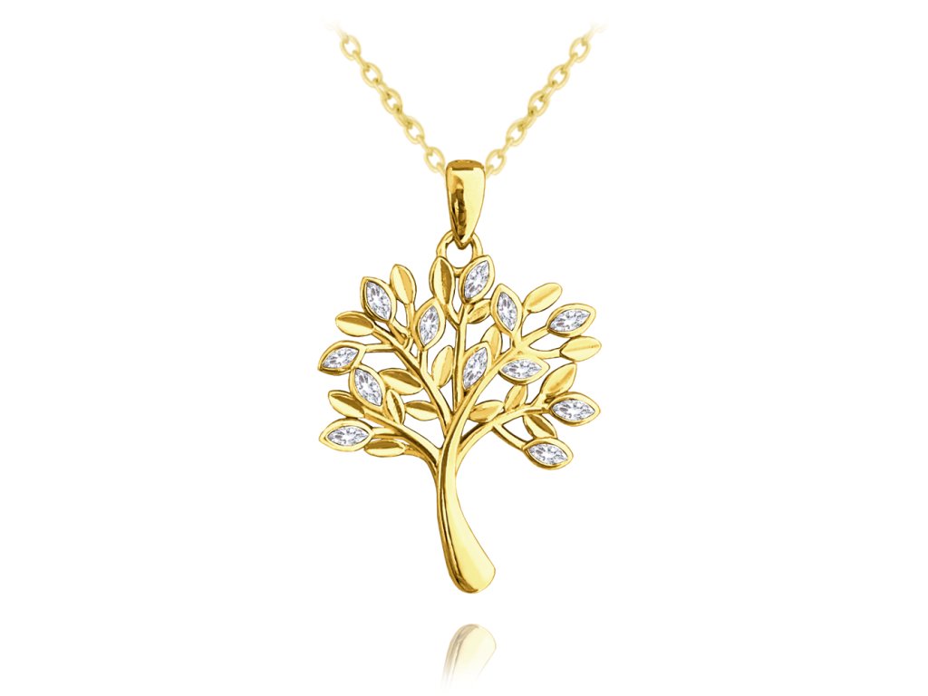 MINET Pozlacený stříbrný náhrdelník STROM ŽIVOTA s bílými zirkony