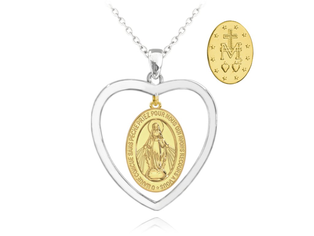 MINET Pozlacený stříbrný náhrdelník Zázračná medaile | Medailka Neposkvrněného Početí v srdci