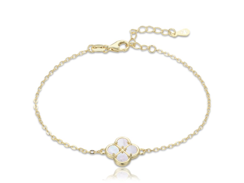 MINET Pozlacený stříbrný náramek čtyřlístek s bílou perletí