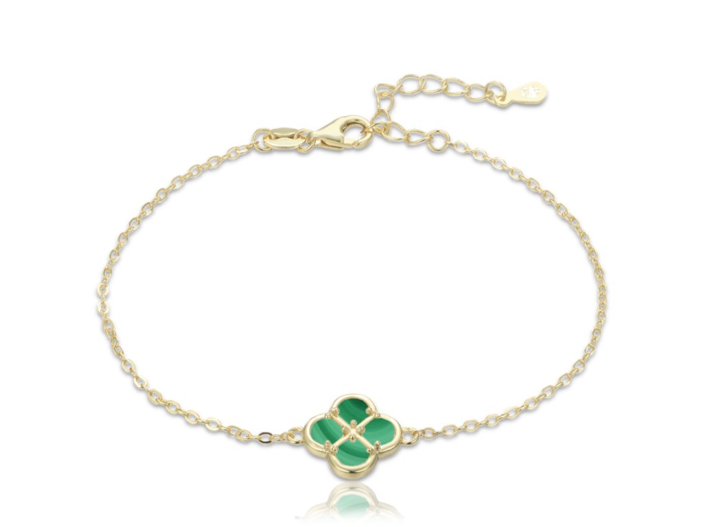 MINET Pozlacený stříbrný náramek čtyřlístek s malachitem
