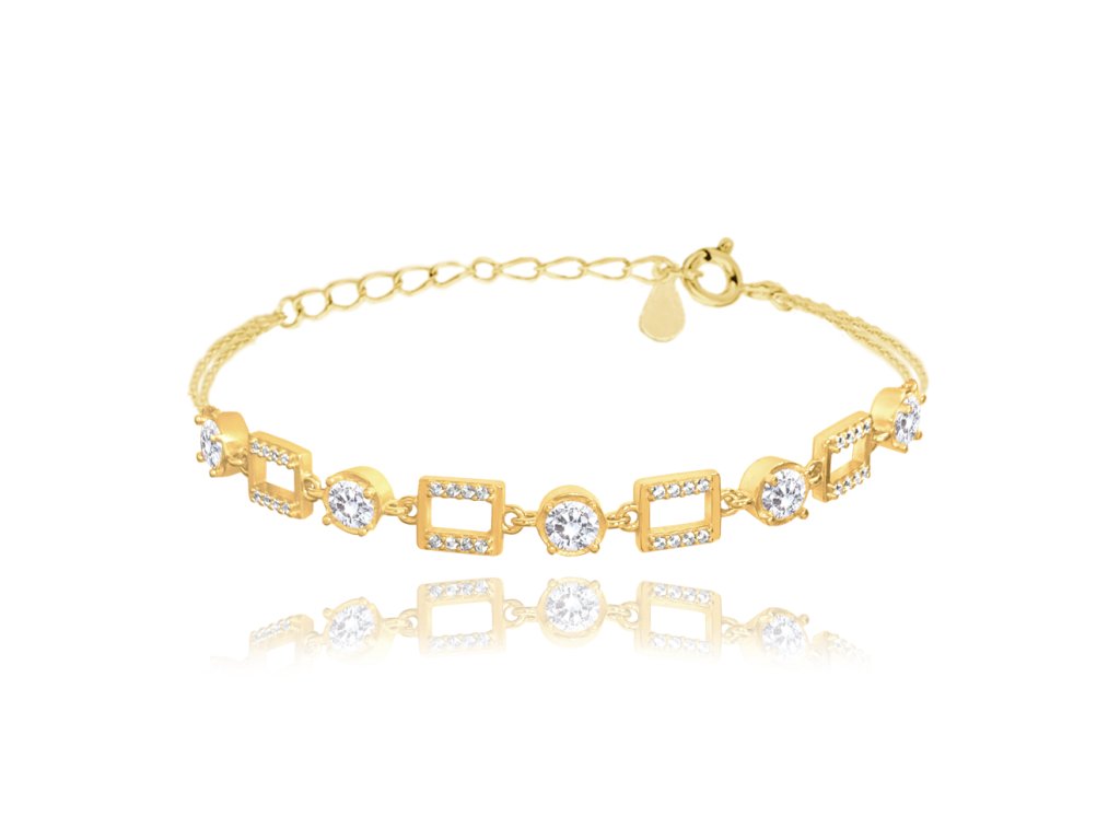 MINET Pozlacený stříbrný náramek KOSTKY s bílými zirkony