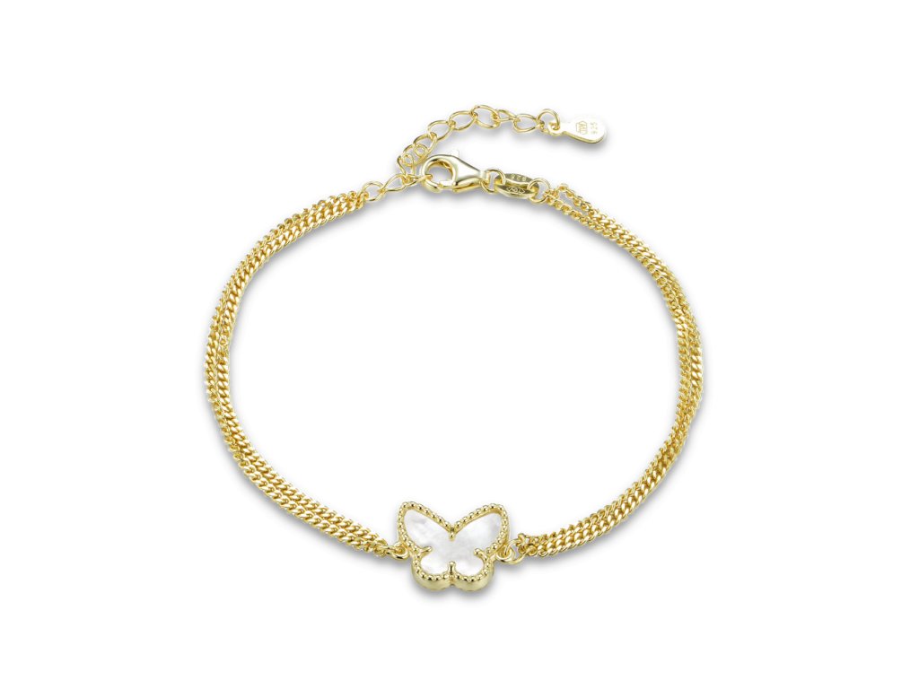 MINET Pozlacený stříbrný náramek motýlek s bílou perletí