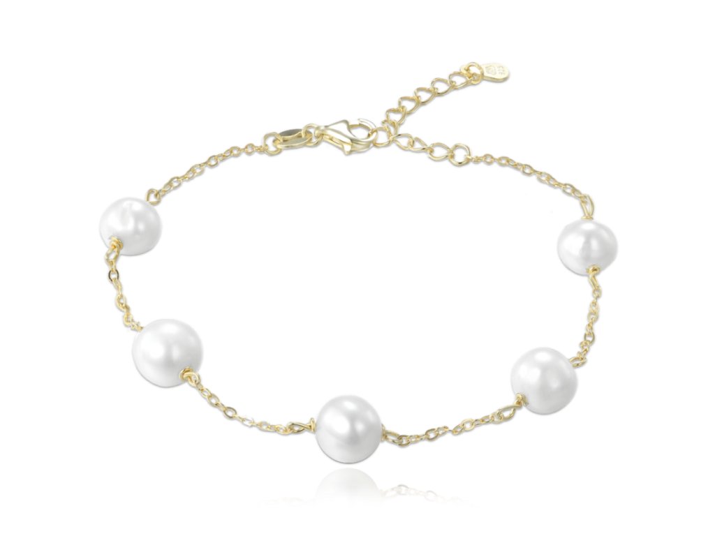 MINET Pozlacený stříbrný náramek s bílými perlami