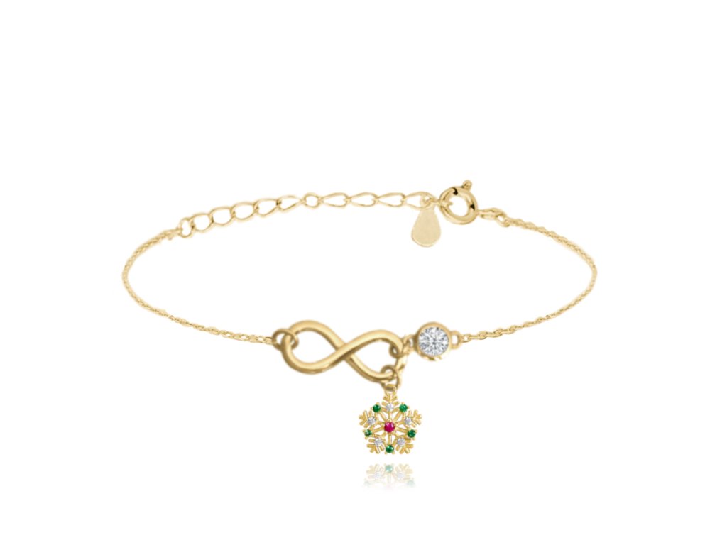 MINET Pozlacený stříbrný náramek VLOČKA s barevnými zirkony