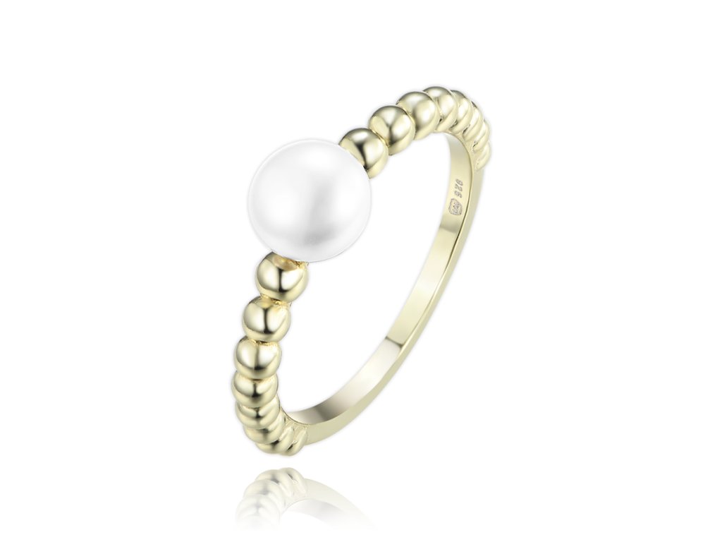 MINET Pozlacený stříbrný prsten s perlou a kuličkami vel. 51
