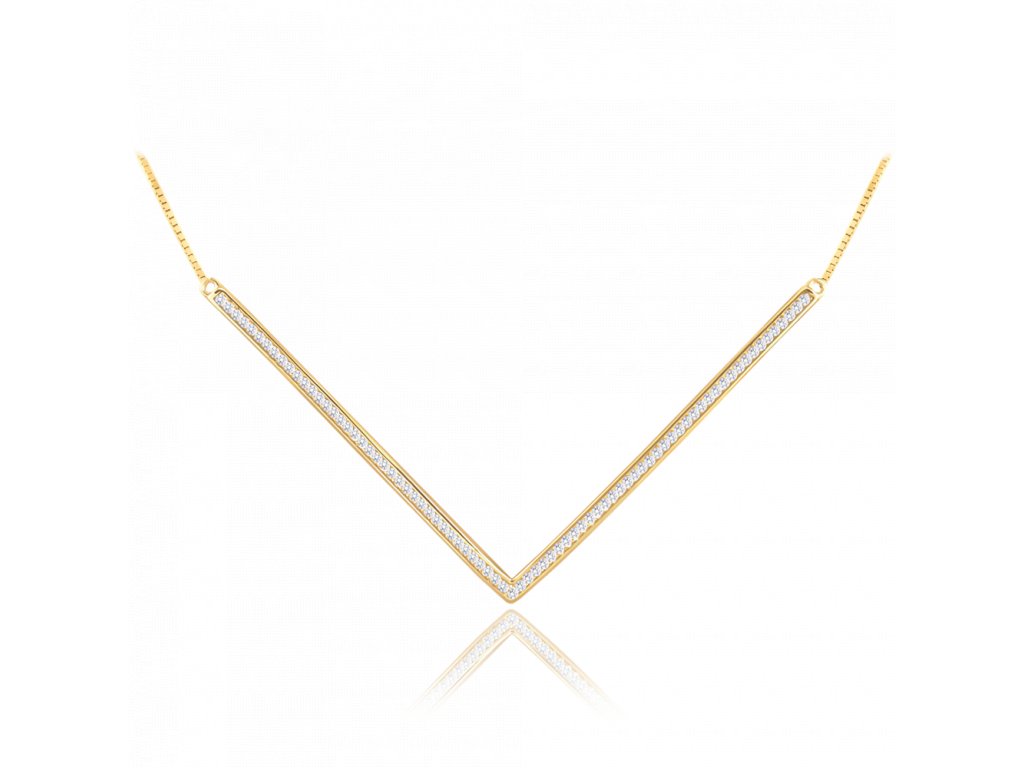 MINET Pozlacený stylový stříbrný náhrdelník "V" s bílými zirkony