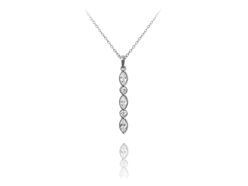 MINET Romantický stříbrný náhrdelník s bílými zirkony