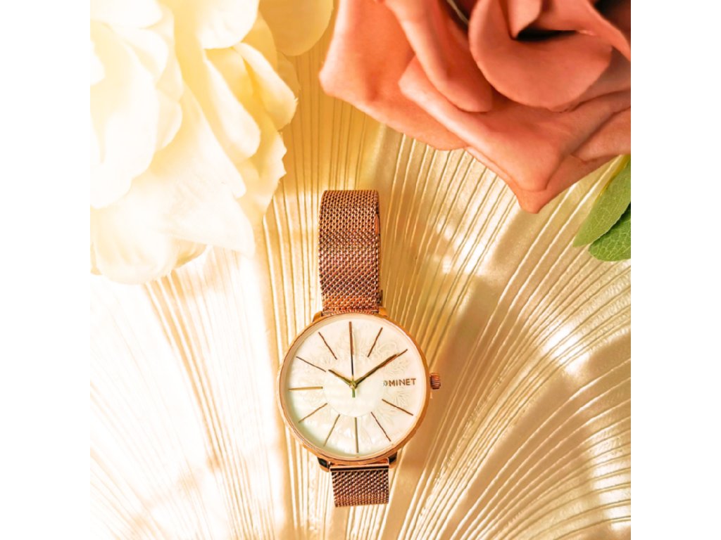 Elegantní hodinky české značky MINET s modrým perleťovým číselníkem a ocelovým rose gold řemínkem milánského typu. Vyměnitelný řemínek se snadným systémem zkracování se přizpůsobí obvodu ruky. Hodinky jsou vyrobeny z hypoalergenní nerezové oceli.
