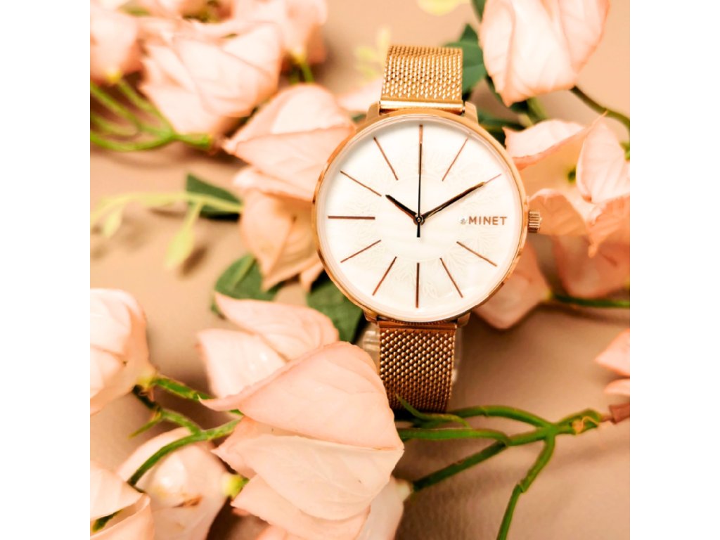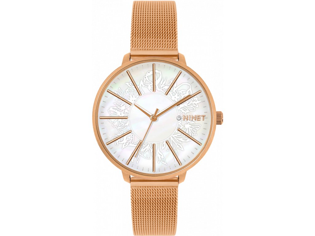 MINET Rose gold dámské hodinky PRAGUE MESH