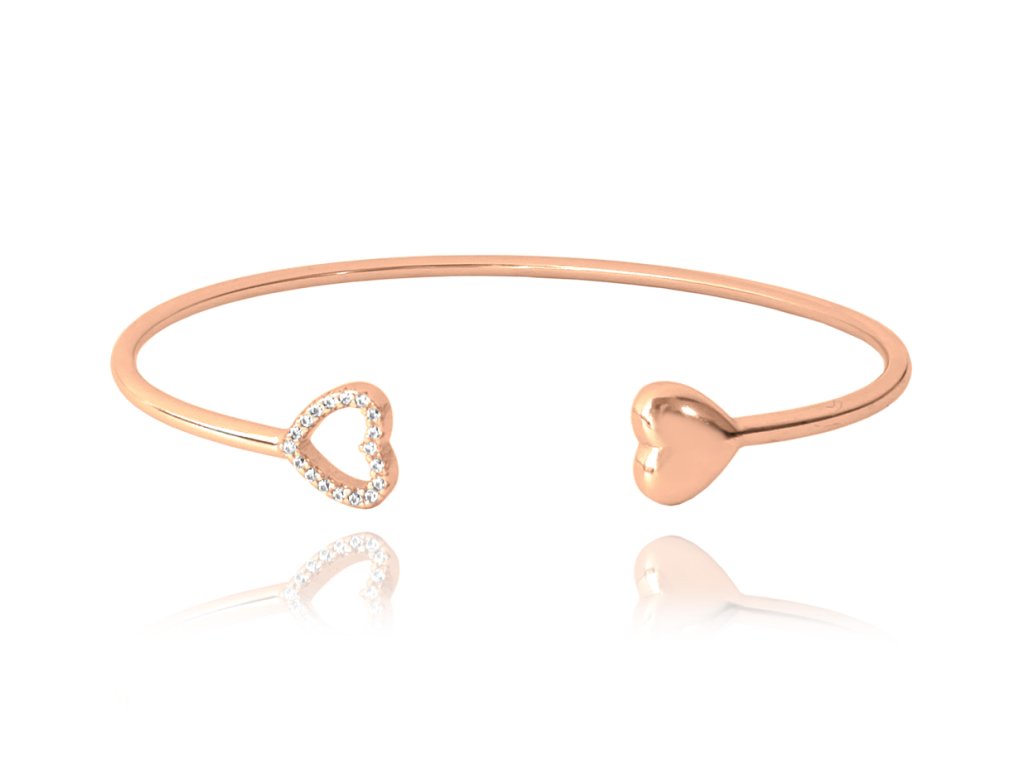 MINET Rose gold pevný stříbrný náramek LOVE s bílými zirkony