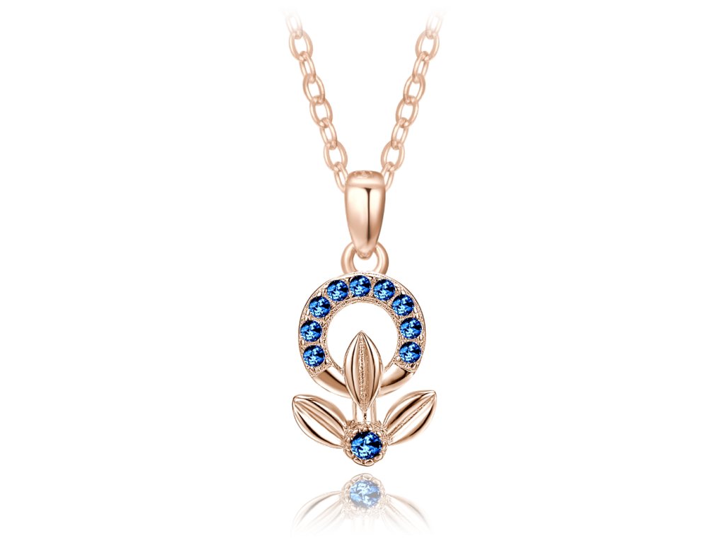 MINET Rose gold stříbrný náhrdelník kytička s modrými zirkony
