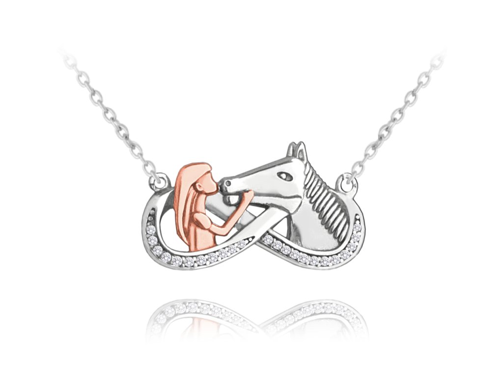 MINET Rose gold stříbrný náhrdelník nekonečná láska KŮŇ s bílými zirkony
