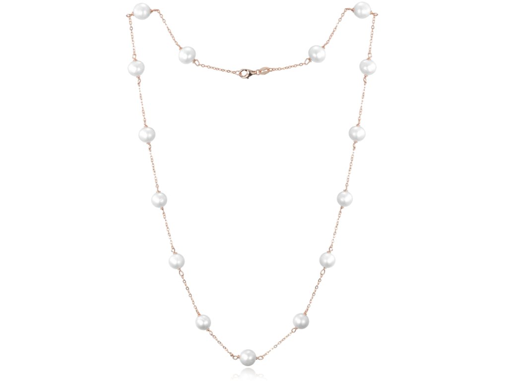 MINET Rose gold stříbrný náhrdelník s přírodními perlami Ag 925/1000 12,15g