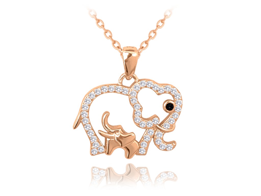 MINET Rose gold stříbrný náhrdelník SLONICE A SLŮNĚ s bílými zirkony
