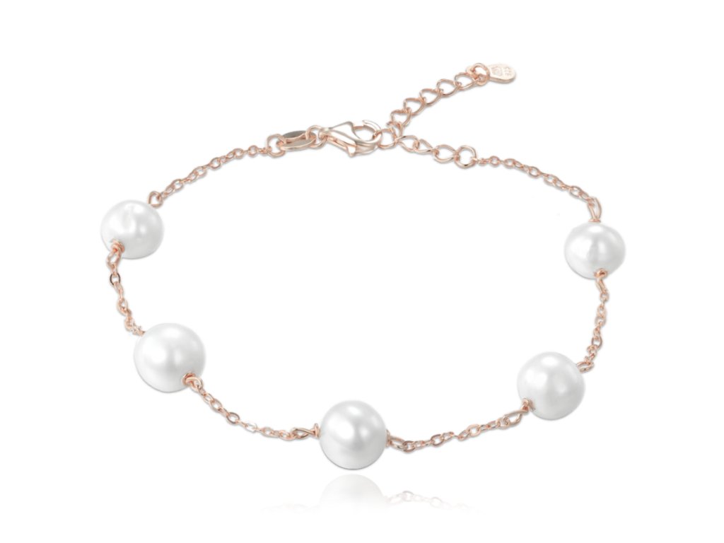 MINET Rose gold stříbrný náramek s přírodními perlami