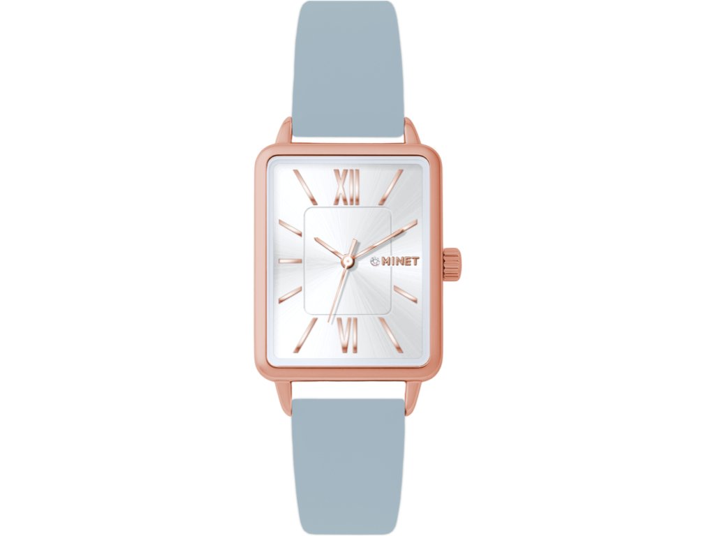 MINET Rosegold dámské hodinky SIENA s šedým koženým řemínkem