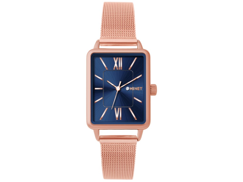 MINET Rosegold-modré dámské hodinky SIENA se rosegold ocelovým řemínkem
