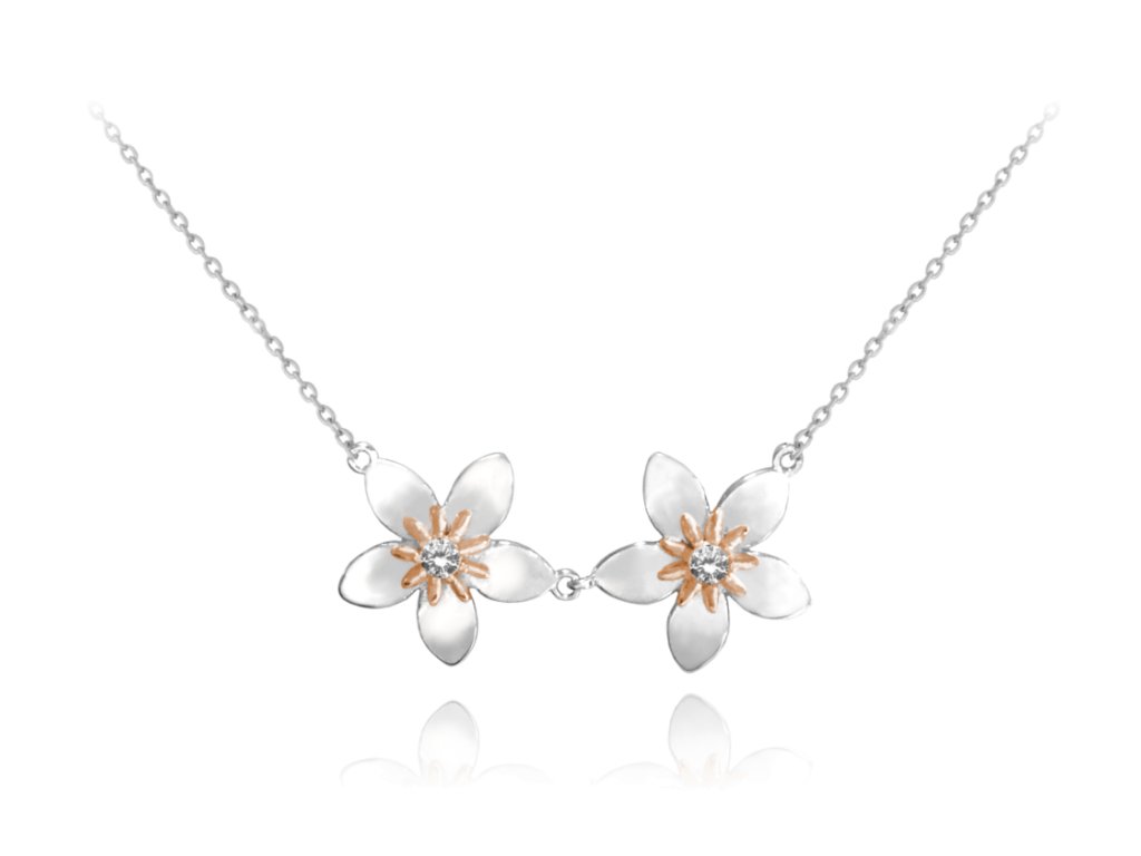 MINET Rozkvetlý stříbrný náhrdelník FLOWERS se zirkonem