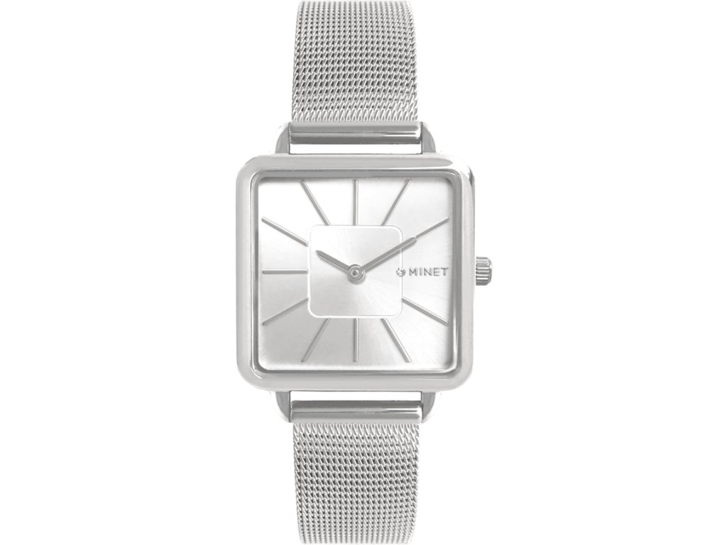 Elegantní hodinky české značky MINET se stříbrným číselníkem. Moderní ocelový řemínek milánského typu se systémem Easy-click lze snadno vyměnit za jiný i bez použití hodinářského náčiní a snadným systémem zkracování ho přizpůsobit obvodu ruky. Hodinky jsou vyrobeny z hypoalergenní nerezové oceli.