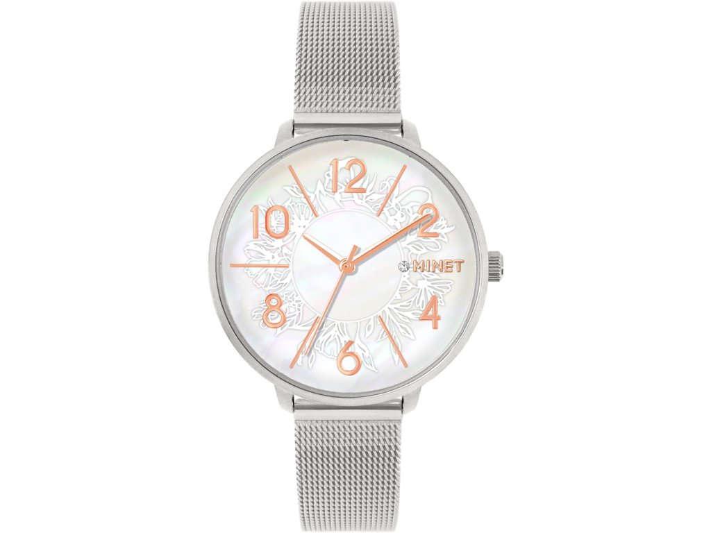 MINET Stříbrné dámské hodinky PRAGUE Silver Flower Mesh s čísly