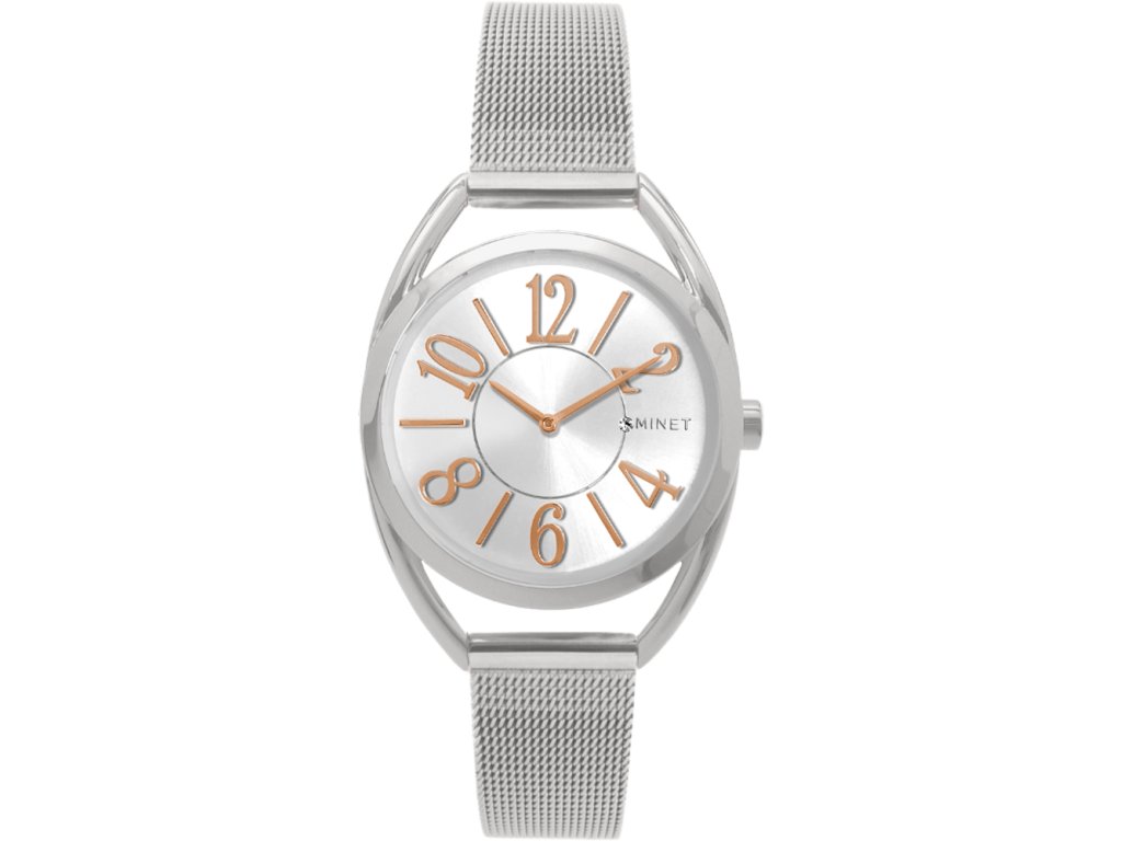 Přehledné číslice a elegantní design hodinek MINET v lesklém stříbrném provedení oceníte při jejich každodenním nošení. Sladit je můžete s jakýmkoliv oblíbeným kouskem vašeho šatníku a díky pohodlnému propletenému pásku je na zápěstí téměř neucítíte.