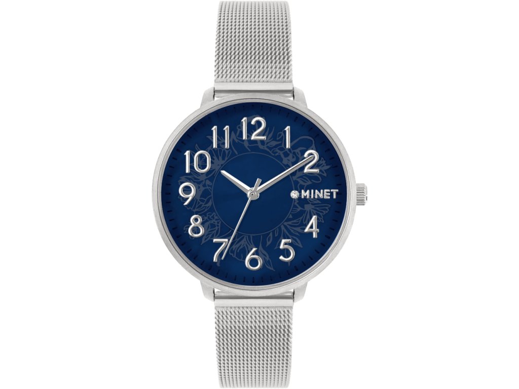 Elegantní hodinky české značky MINET s modrým perleťovým číselníkem a ocelovým řemínkem milánského typu. Vyměnitelný řemínek se snadným systémem zkracování se přizpůsobí obvodu ruky. Hodinky jsou vyrobeny z hypoalergenní nerezové oceli.
