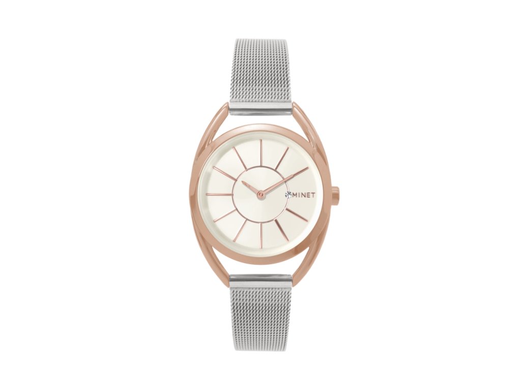 MINET Stříbrno-růžové dámské hodinky ICON SEMI ROSE GOLD MESH