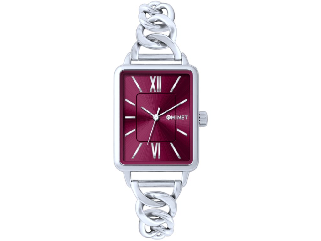 MINET Stříbrno-vínové dámské hodinky SIENA se stříbrným ocelovým řemínkem