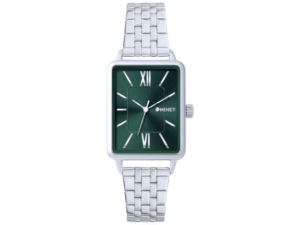 MINET Stříbrno-zelené dámské hodinky SIENA se stříbrným ocelovým řemínkem