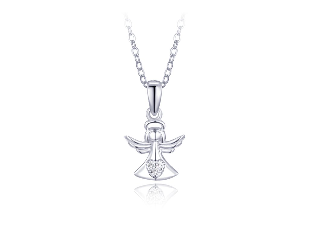 MINET Stříbrný náhrdelník anděl s bílými zirkony