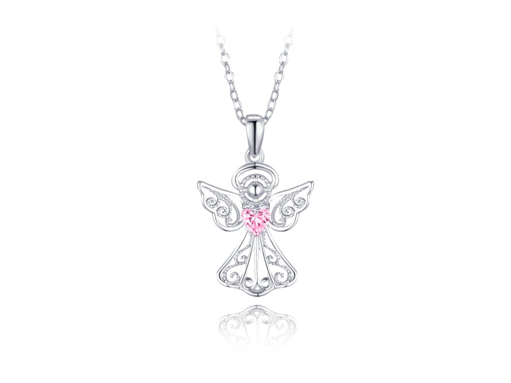 MINET Stříbrný náhrdelník anděl s růžovým zirkonem
