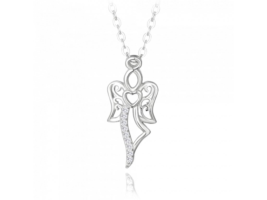 MINET Stříbrný náhrdelník ANDĚL se zirkony
