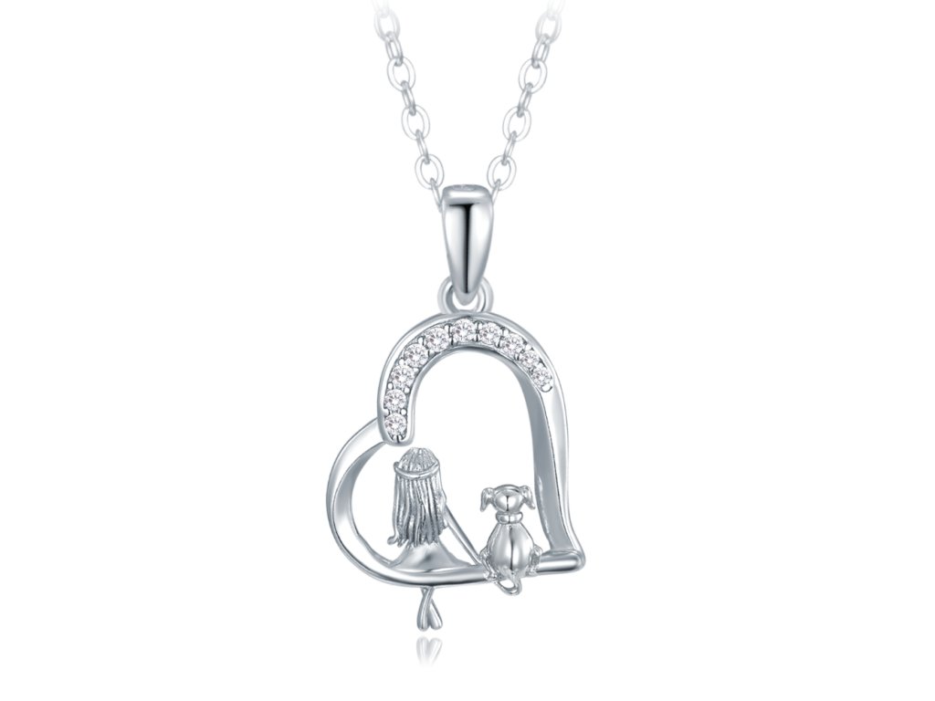 MINET Stříbrný náhrdelník dívka se psem a bílými zirkony